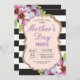 Invitation de Brunch de la Fête des mères. Parties scintillant d'or. Aquarelle Bleue Florale Chic. Blancs et Noirs. Aquarelle rose et violet couleur florale. Numérique imprimable. Pour plus de personnalisation, cliquez sur le bouton "Customiser" et utilisez notre outil de conception pour modifier ce modèle.