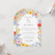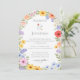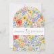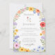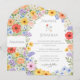 A soft, romantic watercolor floral pattern featuring a cheerful mix of peach roses, golden daisies, delicate blue blossoms, and airy purple florals. The design is densely arranged with lush greenery and varied blooms, creating a vibrant yet balanced composition that feels fresh, garden-inspired, and perfect for a whimsical or elegant invitation.