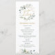 Menu de fête de mariage - Ce design présente une illustration du feuillage vert et or en aquarelle.