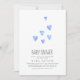 Cette invitation baby shower de coeur aquarelle est parfaite pour un baby shower simple. Le design sucré présente de mignons coeurs pastel aquarelle aux teintes bleu foncé, bleu clair, bleu clair et turquoise.