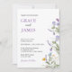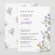 Celebrate your love with this charming watercolor meadow floral wedding invitation featuring a beautiful variety of hand-painted flowers. The design showcases lavender, daisies, and pansies arranged gracefully along the right side of the invitation, creating a soft and romantic garden-inspired look. Perfect for meadow, garden, outdoor, and spring or summer weddings, this invitation can be personalized with your names, date, and venue details for a timeless and elegant presentation. W010