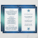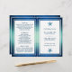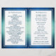 Ces programmes bi-plis sont parfaits pour tout couple qui planifie un mariage romantique en bord de mer. La décoration est composée d'un arrière - plan d'aquarelle dans les tons bleu et vert avec un cadre décoratif blanc bordé et est agrémentée d'un délicieux motif d'étoiles de mer. Le design simple peut être personnalisé pour convenir à votre événement spécial et sera la commande parfaite pour toute fête sur la plage, y compris : douches nuptiales, fiançailles, wedding showers, fêtes d'anniversaire et bien plus encore.