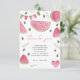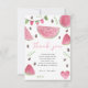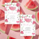 Kawaii et mignonne pastèque rose Fille 1er anniversaire Invitation de fête. Le design comprend des pastèques aquarelles, des drapeaux de vacances sur le thème de la pastèque, un coeur de pastèque, des graines de pastèque, "un dans un melon!" et une tranche de pastèque souriante d'aquarelle. Notre douce petite fille est une dans un melon !