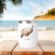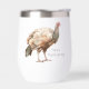 Paruline à vin thermique avec une illustration d'aquarelle d'une dinde en vert muet, marron et neutre avec le Bon thanksgiving de script en dessous de l'image dans une couleur de police pour correspondre à l'illustration. Le couvercle sécurisé et étanche assure un transport sans souci, ce qui en fait le compagnon idéal pour un rassemblement extérieur Thanksgiving.
