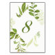 Une carte de numéros de table élégante et fantaisiste avec un feuillage vert aquarelle. Il conviendra parfaitement aux mariages, baby showers, anniversaires et autres événements. Des éléments correspondants sont disponibles. Tableau 8