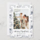 Cartes de Noël en aquarelle avec baies d'hiver et feuillage en bleu et gris. Personnalisez facilement ces cartes de Noël aquarelle avec votre photo, nom de famille et texte.