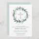 Cette première invitation à la communion moderne et élégante comprend une belle couronne d'aquarelle de feuilles verts sauge et des bourgeons de fleurs gris argent autour d'une croix bleue, idéale pour l'occasion spéciale de votre fils. Objets CORRESPONDANTS disponibles dans notre magasin.