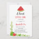 WATERMELON BABYSHOWER INVITATION Cette mignonne "petite fille douce est en route" baby shower invitation de fille présente un arrière - plan blanc avec pastèques et feuilles verts en aquarelle. Au verso, un arrière - plan blanc avec pastèque et motifs à rayures roses.