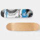 The Wave Mechanism – Custom Skateboard brings abstract art to the streets. Symmetrical circular motifs evoke gears in motion, while the bold blue wave band flows across the center, balancing structure with fluidity.