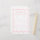 Ajoutez une touche amusante à vos jeux de douche nuptiale avec cette Fête des mariées Wavy Pink personnalisée Guess the Age Game ! Parfait pour un thème de douche nuptiale "liing the knot" ou "off the market", ce jeu apporte des rires et des souvenirs à toute célébration. Idéal pour un thème de douche avant-nuptiale, des idées de douche avant-nuptiale ou une fête avant-nuptiale, c’est une activité charmante qui complète "l’amour est en fleur" et d’autres idées de douches nuptiales roses. Conçu pour convenir à toutes les douches nuptiales roses ou les soirées bachelorette rose, c'est un délicieux ajout à votre journée spéciale!
