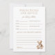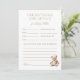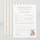 This card features soft watercolor stripes, a vintage teddy bear, and elegant script — inviting guests to share their predictions for baby on the way.