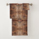 Bath Towel Set Of Three Sizes decorative bathroom amenity and home furnishing decor accessory printed with a Weathered Aged Wood Photo Closeup Pattern Design mixed media mirrored geometric repeating graphic art image by TheFabricSeal at Zazzle #ZazzleMade https://www.zazzle.com/store/thefabricseal