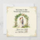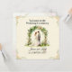 A romantic, watercolor wedding invitation card featuring a fairytale garden scene. This design showcases a couple standing under a lush floral arch made of green leaves and soft blooms, framed with delicate floral borders and set against a dreamy cream background. Elegant serif and graceful calligraphy fonts highlight the ceremony details, capturing a sophisticated, timeless, and classy vibe suitable for both digital and print use. Perfect for anyone seeking a premium, unique, and personalized wedding announcement