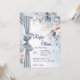 Timeless save the date wedding card with soft watercolour florals in dusty blue and blush tones .