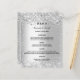An elegant, glamorous wedding menu card. Personalize and add your names, date and the wedding menu. Faux silver metallic looking background, decorated with faux glitter sparkles.