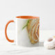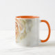 My original photographic artwork is featured on this pretty mug, consisting of my original photograph of a cream orange rose. The image was processed with an illustrated painterly effect for an artsy flair. There is a date on the bottom center of the cup in subtle tones for a wedding date that you can personalize as you please. The inside of the cup and handle are an orange tone to complement the artwork. These are 11-ounce mugs, just the perfect size for your home brewed coffee or tea - or even hot chocolate! It would make a great wedding gift, and you can put packets of coffee, tea bags or hot chocolate inside.