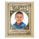 Ce design photo présente votre enfant sur une affiche recherchée. Le texte donne les grandes ondes occidentales et l'image arrière est une silhouette d'un cowboy errant sur son cheval.