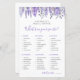What’s In Your Purse? Bridal Shower Game. This playful activity invites guests to search through their purses and check off items from a fun point-based list, making it an easy and entertaining icebreaker for any bridal shower. The design features delicate lavender and wisteria flowers along the top, adding a soft, elegant touch, while the rest of the layout remains clean and simple.
