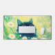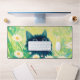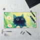 Brighten your workspace with this whimsical black cat desk mat, capturing a moment of playful curiosity in a sunlit field. This charming design features an adorable, fuzzy black cat with big, expressive white eyes peeking up from a lush meadow of vibrant green grass. The foreground is dotted with cheerful, pristine white daisy flowers and sparkles of light. The background is an artistic blend of luminous lime yellow and a clear aqua teal sky, creating a deeply ethereal and bright atmosphere. This black cat desk mat is an ideal accessory for cat lovers, nature enthusiasts, and anyone looking for a cheerful, high-contrast, and artistic way to personalize their computer setup with a sunny, daisy field theme.
