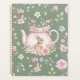Whimsical Bunny Teapot Floral Spring Notebook