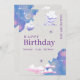 Invitation vos invités à une fête d'anniversaire magique avec ce design d'invitation rêveuse! Avec des nuages moelleux, de la poussière d'étoile, une lune de croissant et des textures de galaxie aquarelle dans les tons violet, rose et bleu — cette carte est parfaite pour les amateurs d'imaginaires de tous âges. Une élégante typographie violette lui donne une touche moderne et charmante. Idéal pour les anniversaires d'enfants, les célébrations ados ou les adultes qui n'ont jamais cessé de rêver. Texte entièrement personnalisable pour l'heure, la date et l'emplacement.