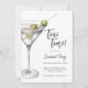 C'est l'heure du tini ! C'est l'heure d'un cocktail autour du thème des martinis. Qu'il s'agisse d'une dégustation de martini ou d'une variété de cocktails, cette invitation donne le ton pour une soirée amusante. Ce design d'invitation a un verre de martini rempli avec trois olives moelleuses peintes en aquarelles subtiles pour un allure simple et sophistiquée. Personnalisez le modèle de texte facile à utiliser avec vos informations de fête et vous êtes tous paramétrés. Cette invitation est disponible en tant qu'invitations imprimées pour l'envoi et en tant que téléchargement numérique sans papier pour l'envoi électronique à vos invités.