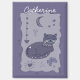 Personalizable Name - This cute hand-painted folk art piece features a serene cat resting under a celestial canopy of a crescent moon and stars. Its dreamy purple palette and delicate botanical motifs create a whimsical, heartwarming atmosphere.