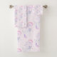 Serviettes de bain rose et violet avec imprimé motif sirène lunatique. Parfait pour une salle de bain à thème sirène