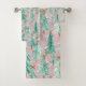 Whimsical Teal Christmas Trees on Pink with Gold Accents Bath Towel Set