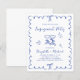 Set the tone for a joyful celebration with this charming engagement party invitation featuring a french blue wavy frame, hand-drawn bows, and playful script lettering. The cheerful toasting wine glasses add a fun, festive touch, creating the perfect blend of romantic and whimsical style. NOTE: This budget-friendly paper is similar in weight to photo paper -- a larger and thicker 5x7 traditional card stock version is also available (message us for the link).