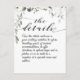 The Details, une luxueuse carte d'enceinte mariage aquarelle avec des pivoines blanches et des vignes vertes à l'eucalyptus argenté, avec une élégante calligraphie à échelles longues annonçant vos détails mariages.