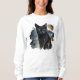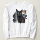 White Sweatshirt with Black Cat and Watercolor Night Scene
