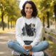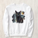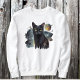 White Sweatshirt with Black Cat and Watercolor