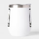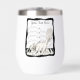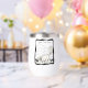 Ce buveur est muni d'un chat blanc qui se balade sur les touches de piano avec des barres de notes de musique ondulées sur la partition dans un cadre noir ondulé avec des points blancs. Customisez votre texte avec le modèle.
