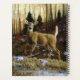 Un chien blanc est surpris par votre présence. Les feuilles d'automne et un léger dépoussiérage de neige indiquent qu'il est à la fin de l'automne dans la forêt. OEuvre d'art réaliste créée à partir d'une peinture à l'huile originale de l'équine et de l'artiste faunique Crista S. Forest.