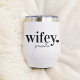 Célébrez la nouvelle Mme avec ce joli design de lune de miel textuelle avec "wifey" en lettres noires avec une petite illustration cardiaque. Personnalisez avec son nom sous le script manuscrit. Correspondant "hubby" vendu séparément.