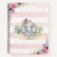 Aquarelle illustration d'un adorable petit éléphant. De belles fleurs roses entourent cette créature d'animal super sauvage. Célébrez l'anniversaire sauvage de votre enfant avec ce design simple et mignon. Le titre "sauvage" est écrit dans un style calligraphique. Idéal pour tenir un journal quotidien de votre bébé.