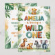Adorable invitation safari "Wild One" avec des animaux de la jungle d'aquarelle (lion, girafe, éléphant, zèbre) avec des feuilles tropicaux. Parfait pour les fêtes de premier anniversaire ! ✨ Amelia à l'avant + blanc à l'arrière pour les détails de la fête ✨ Impression de haute qualité sur les cartes premium ✨ Peut créer avec N'IMPORTE QUEL nom sur demande - envoyez-moi un message ! Idéal pour les fêtes à thème Wild One, les fêtes safari et le premier anniversaire de naissance.