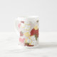jolie porcelaine, bonne dimension effet brillant bien dans l'ensemble. Le motif et les couleurs sont réussis.Je trouve néanmoins dommage de ne pas occuper tout l'espace avc le motif car la partie rouge au dos de la tasse est trop présente et pas intéressante visuellement.