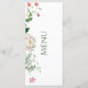 Elevate your reception tablescape with this elegant botanical wedding menu card, featuring delicate watercolor florals and lush greenery in a soft, romantic arrangement. The refined layout highlights each course with graceful serif typography, creating a polished and timeless presentation for your wedding meal.