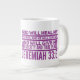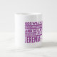 Jumbo Certains jours, une tasse de joe de taille régulière ne le fera pas. Quand vous avez besoin d'une dose de caféine en plus, utilisez votre tasse XL de Zazzle. Peut contenir jusqu'à 591 ml. Idéal pour des soupes, céréales, glaces et du chili aussi ! Cette tasse géante à une anse en forme de C pour une utilisation confortable. Dimensions : Hauteur : 4,5" Diamètre : 3,9" Capacité : 20 onces Micro-ondes et lave-vaisselle sans danger Construction céramique forte Satisfait ou dépasse les exigences de la FDA en matière de salubrité des aliments et des boissons Imprimé à la demande dans Reno, NV Designer Astuce : Pour assurer une impression de la plus haute qualité, veuillez noter que l’aire de conception personnalisable de ce produit mesure 4 po x 10,5 po