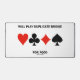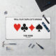 Les joueurs de pont dupliqués affamés de pont profiteront de ce tapis de bureau d'humour de pont wry avec les quatre costumes de carte ainsi que le dicton "Will Play Duplicate Bridge For Food". Faites faire aux autres une double prise avec une dose d'attitude de pont à votre prochain jeu de bridge avec ce tapis de bureau de relais mémorable!
