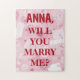 "Pop the question in a fun and unforgettable way with this Will You Marry Me Custom Names Puzzle. Featuring a soft pink background and bold, eye-catching text, this unique puzzle can be personalized with your names to create a romantic and meaningful proposal. As the pieces come together, your heartfelt message is revealed, making the moment extra special. Perfect for engagements, proposals, and surprise announcements, this puzzle turns a big question into a beautiful keepsake they’ll treasure forever."