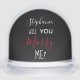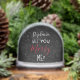 A great way to pop the question! Fun snow globe "Will you marry me?" text (front), and custom photo (back). Bold Black and White with Red Accents. Personalize with her name and add the date to the back so she always remembers your Big Day! Valentine's Day and Christmas are two great days to pop the question to your loved one.