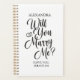 Propose with charm and intention using this elegant white planner featuring the words “Will you marry me?” in graceful black script and “Let’s plan it” at the bottom. Add your partner’s name or a custom message to make it truly personal. This unique and romantic gift is perfect for turning your proposal into a lasting keepsake—and a beautiful way to begin planning your future together. Ideal for any couple, this planner is both a heartfelt surprise and a practical place to start your wedding journey.