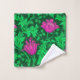 Serviette sertie dans un motif vintage William Morris floral damassé de fleurs et de feuilles d'anémones, numériquement rehaussée et colorée - feuilles vert émeraude, et fleurs dans les tons rose fuchsia sur un arrière - plan vert émeraude foncé