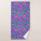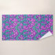 Serviette sertie dans un William Morris, Art Nouveau, imprimé textile d'iris et de feuilles, numériquement rehaussée et colorée, dans une orchidée douce et turquoise, sur un profond améthyste violet arrière - plan