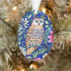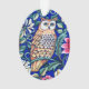 Ornement acrylique dans un William Morris Art Nouveau, motif tapisserie, avec un hibou tan et beige contre les fleurs d'imaginaire et les feuilles, avec un profond arrière - plan bleu cobalt