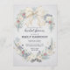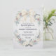 Celebrate the bride-to-be with this elegant winter-themed bridal shower invitation featuring a luxurious cream satin bow, delicate snowflakes, and soft floral arrangements in blush pink and dusty blue. The sophisticated neutral palette with white roses, eucalyptus, and pinecones creates a romantic winter garden aesthetic perfect for holiday or winter weddings.