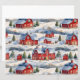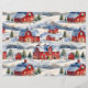 Un beau motif d'hiver avec une scène d'hiver champêtre avec des granges couvertes de neige rouge.